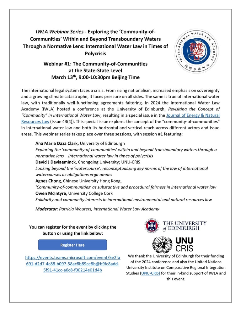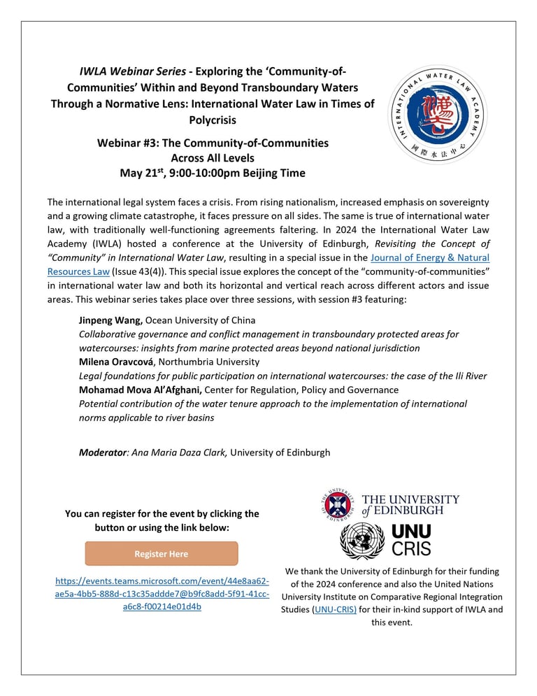 IWLA Webinar Series - Exploring the ‘Community-of-Communities’ Within and Beyond Transboundary Waters Through a Normative Lens: International Water Law in Times of Polycrisis